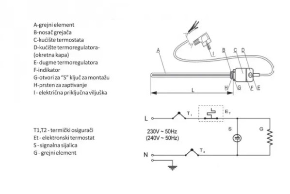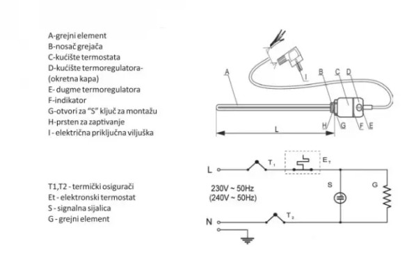 GREJAČ GT 600W BELI PRAV KABL